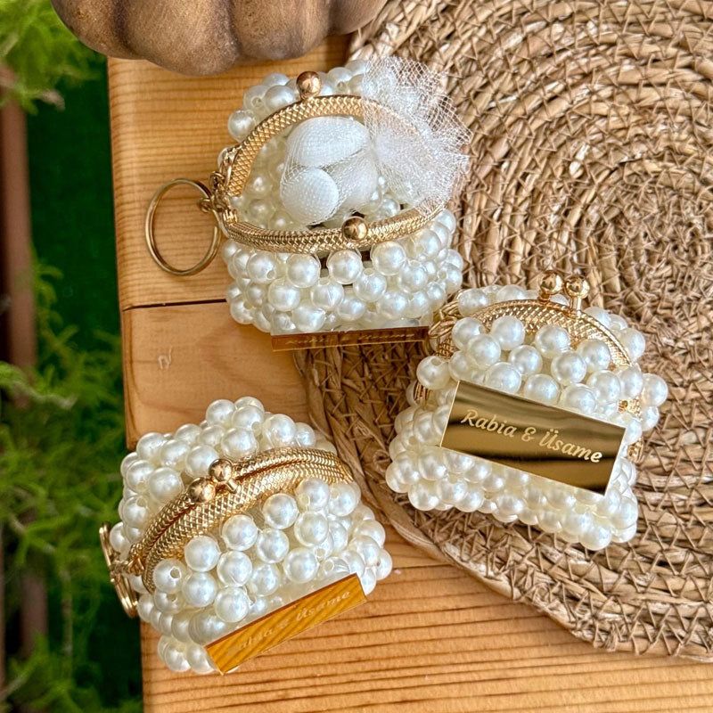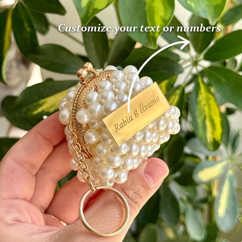 Elegant, playful, and uniquely yours. This pearl bag–shaped keychain adds a touch of charm to your everyday essentials, while letting you customize it with a name, word, or number that truly means something to you 💖